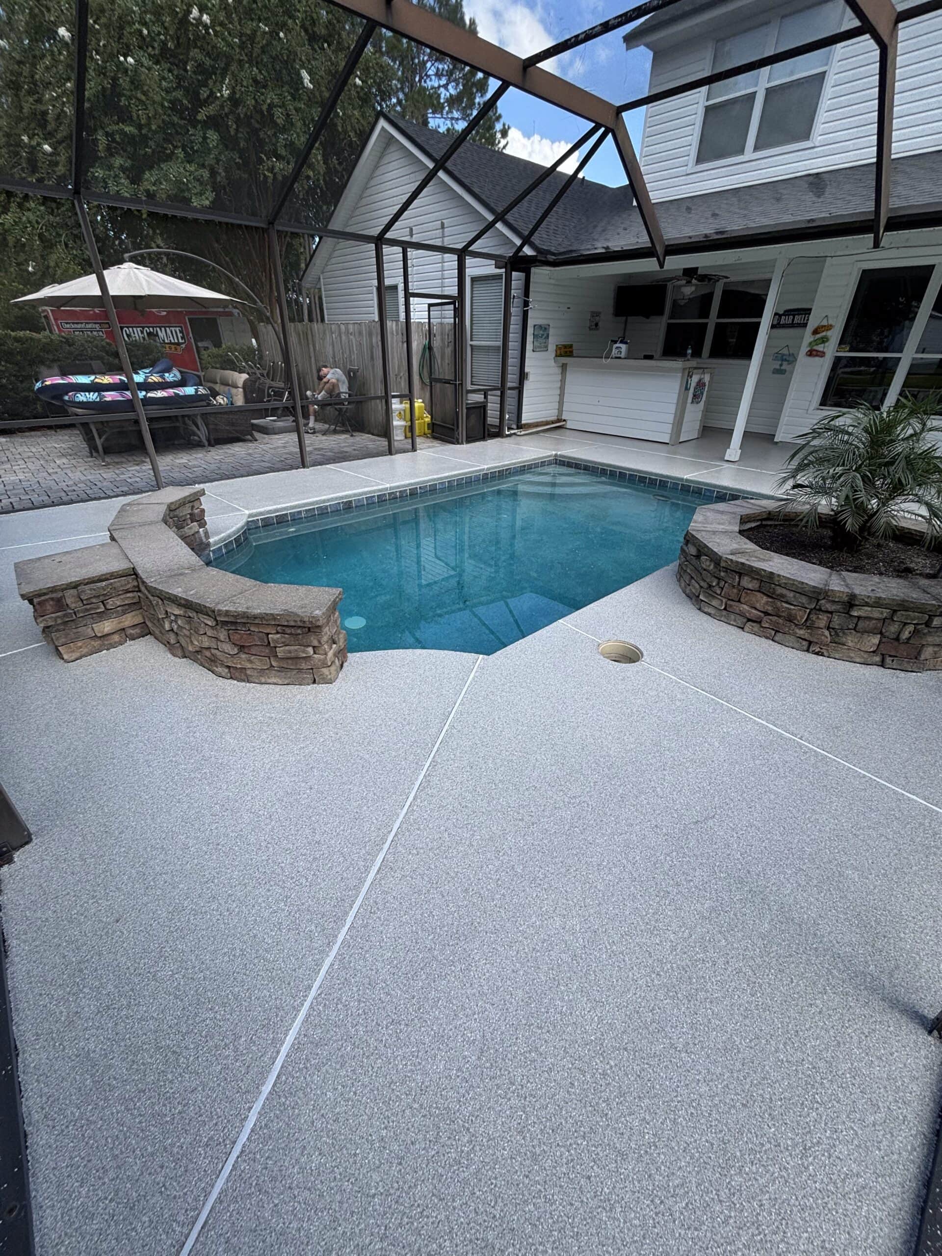 We’re a family-owned company based in Jacksonville, serving the greater Northeast Florida area and South Georgia. With nearly a decade of experience and a reputation for precision, we deliver quality pool deck coating solutions with care, consistency, and attention to detail.