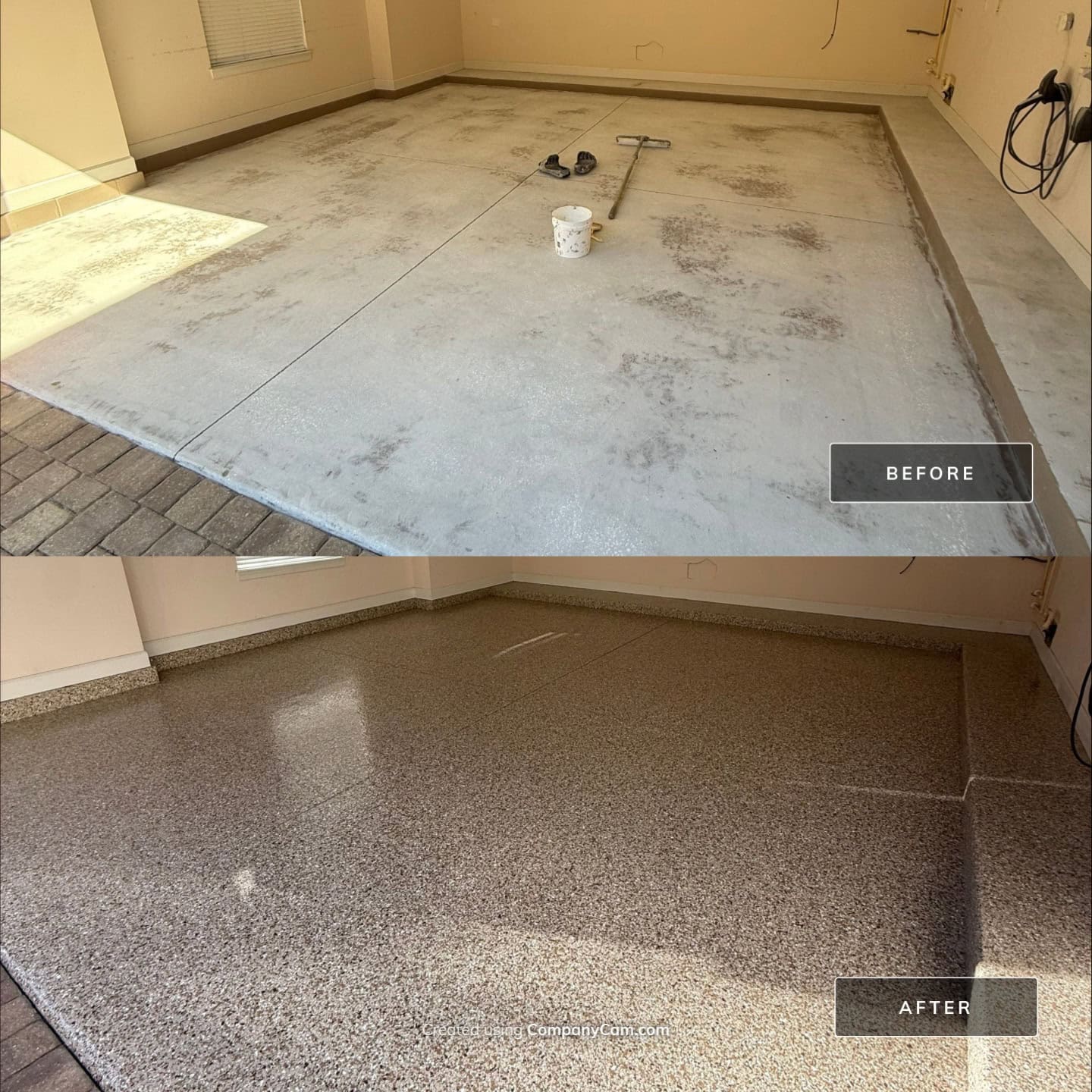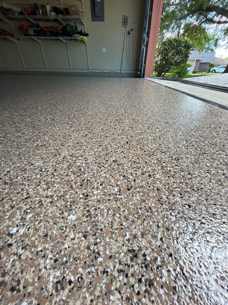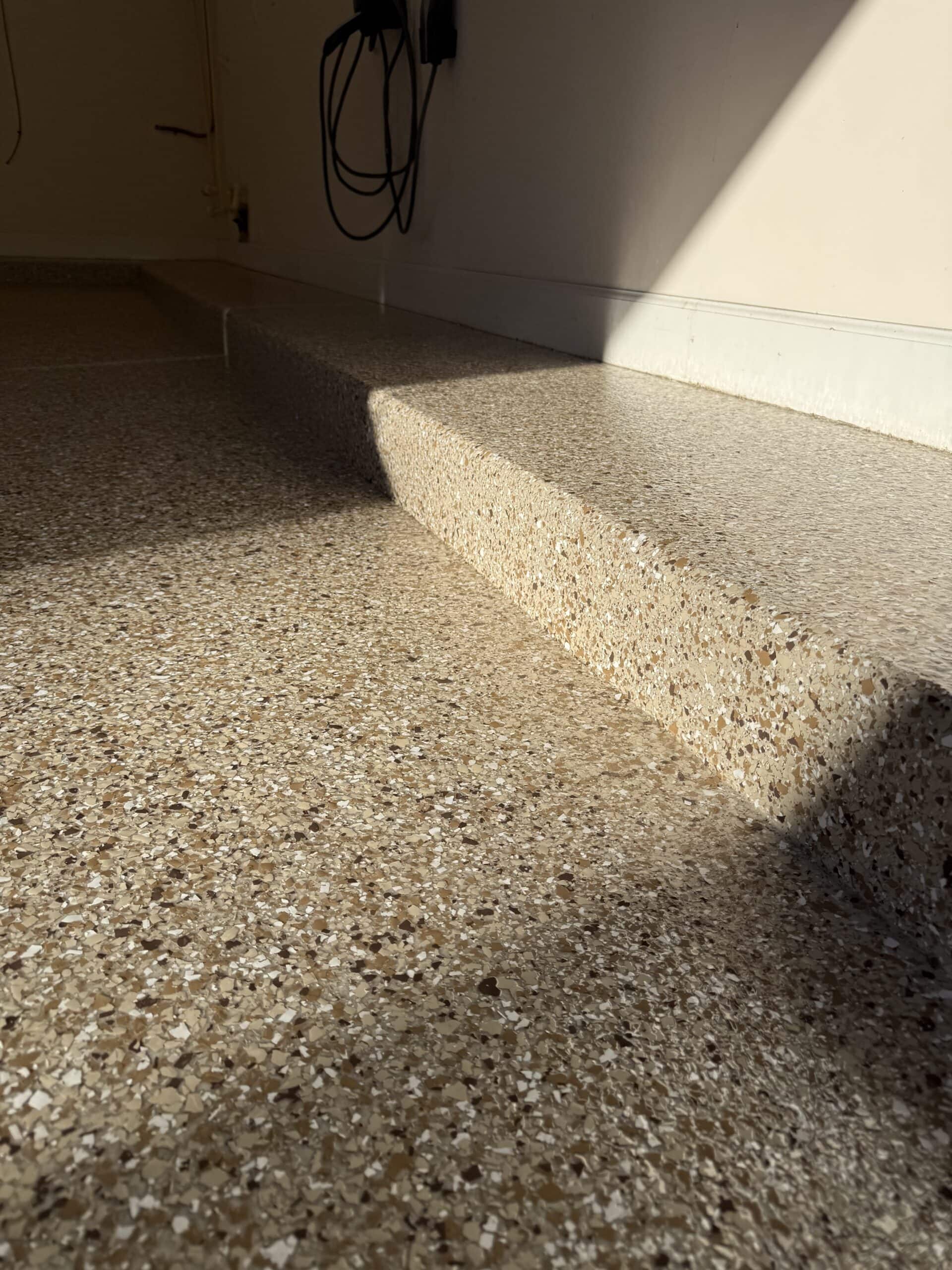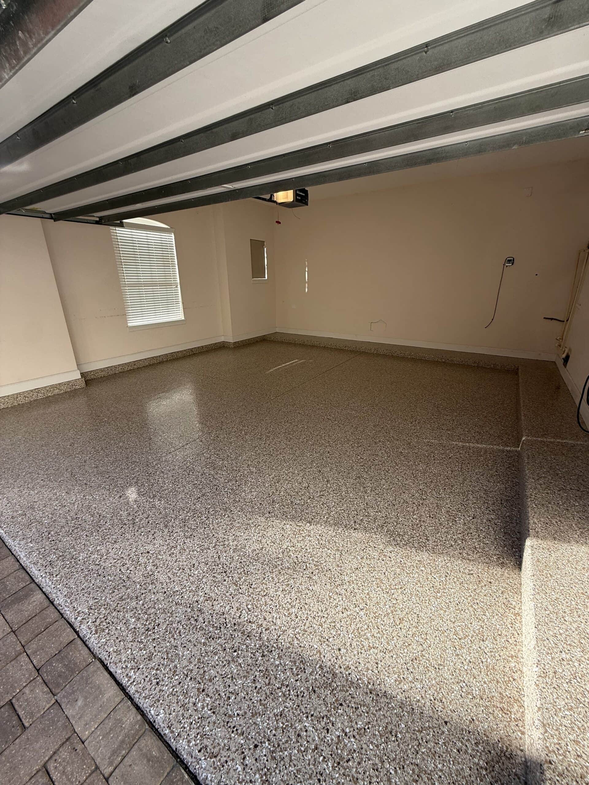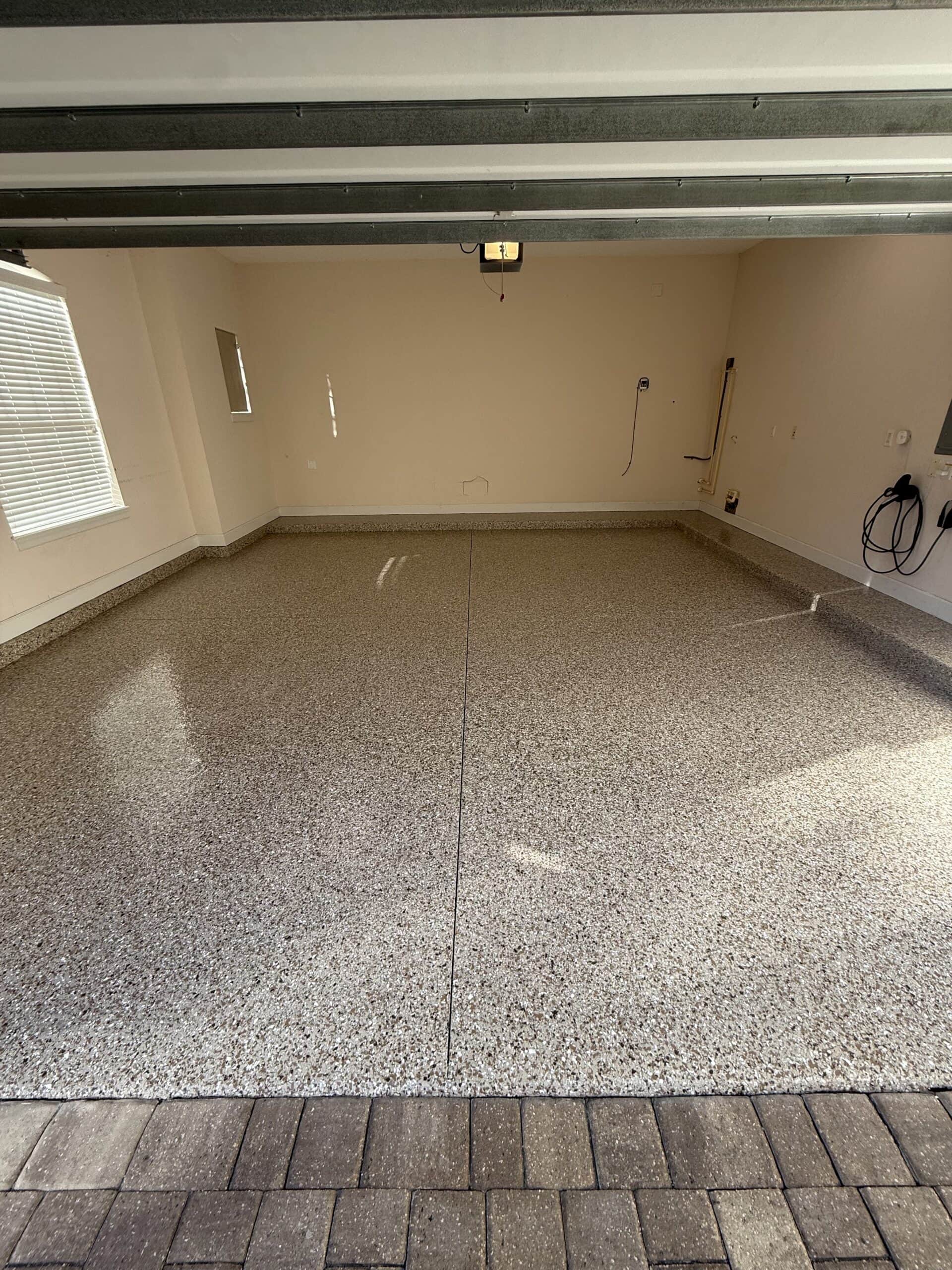 Every Walnut garage floor is installed using our proven system: detailed concrete preparation, a moisture-mitigating base coat, full flake broadcast for complete coverage, and a durable polyaspartic topcoat for long-term protection.