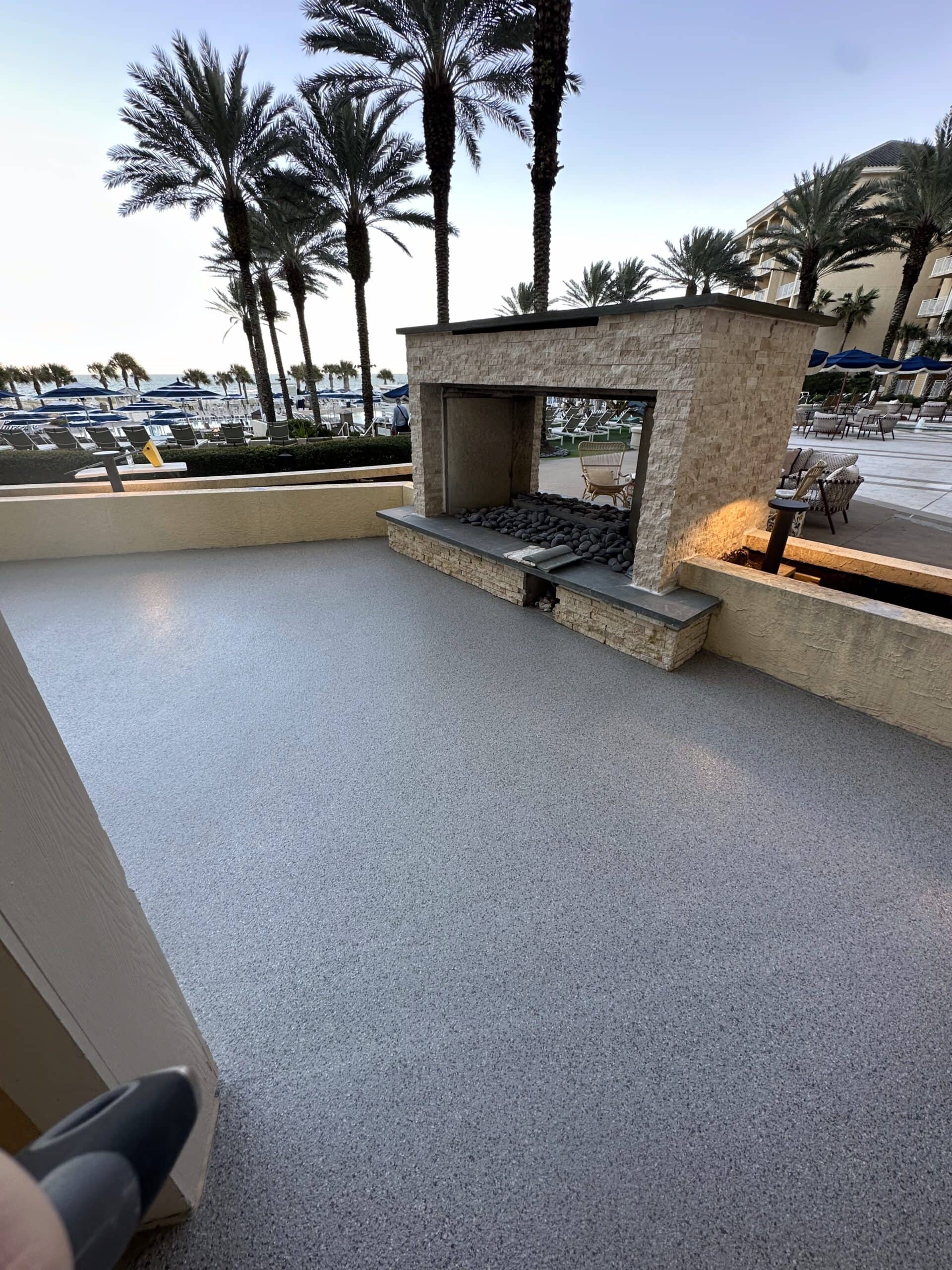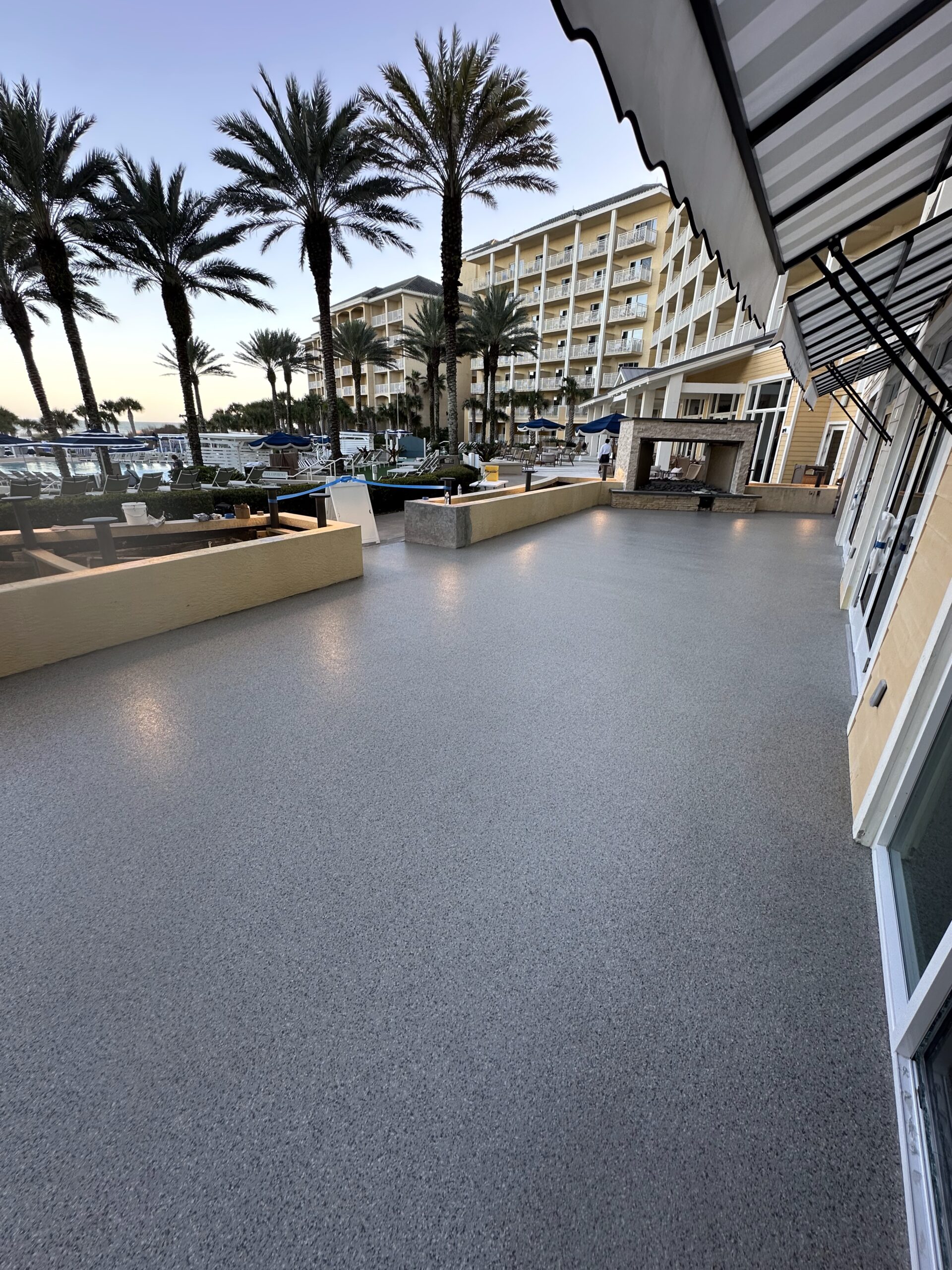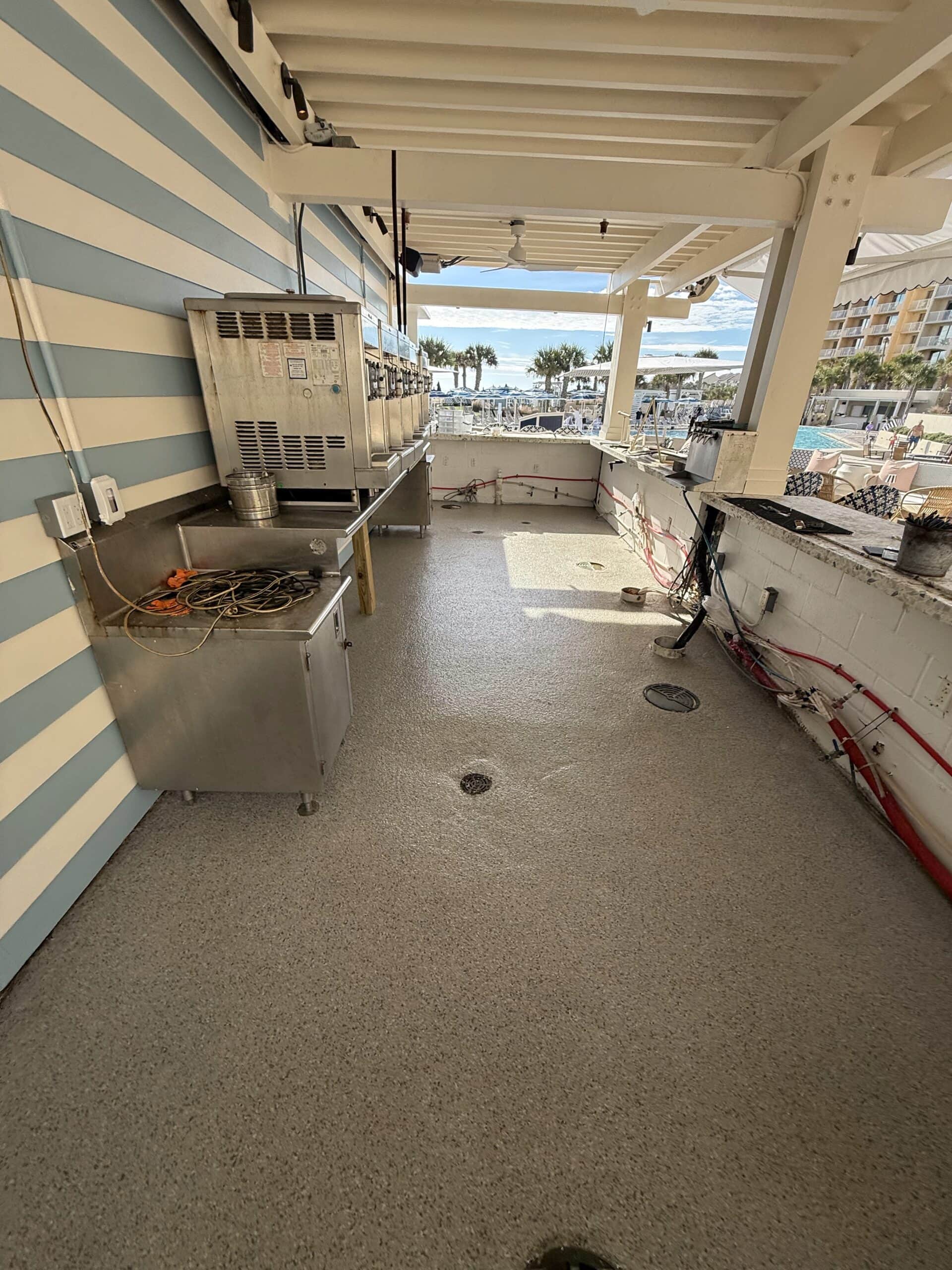 A full outdoor transformation at Omni Amelia Island Resort & Spa, where we resurfaced the back patio and outdoor bar area. Using detailed surface preparation, a polyurea base coat, full flake broadcast, and a protective polyaspartic topcoat, this space was upgraded with a durable, slip-resistant, and easy-to-maintain finish built to withstand heavy foot traffic and coastal conditions. A refreshed look designed to elevate both guest experience and long-term performance.