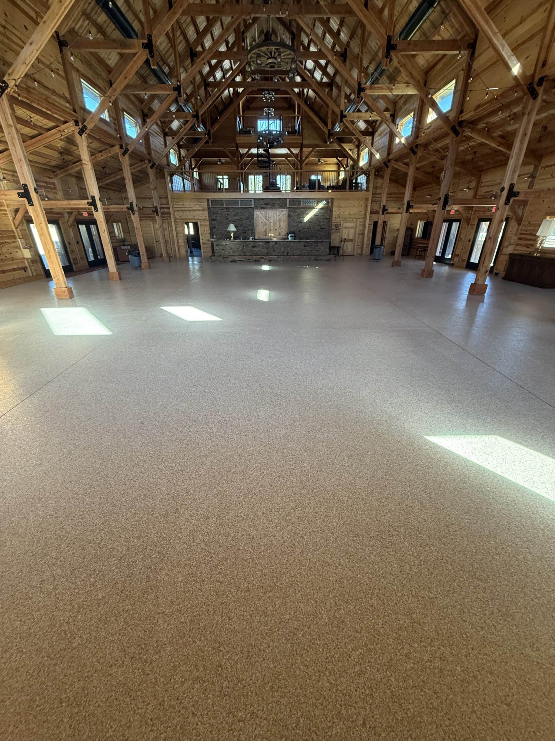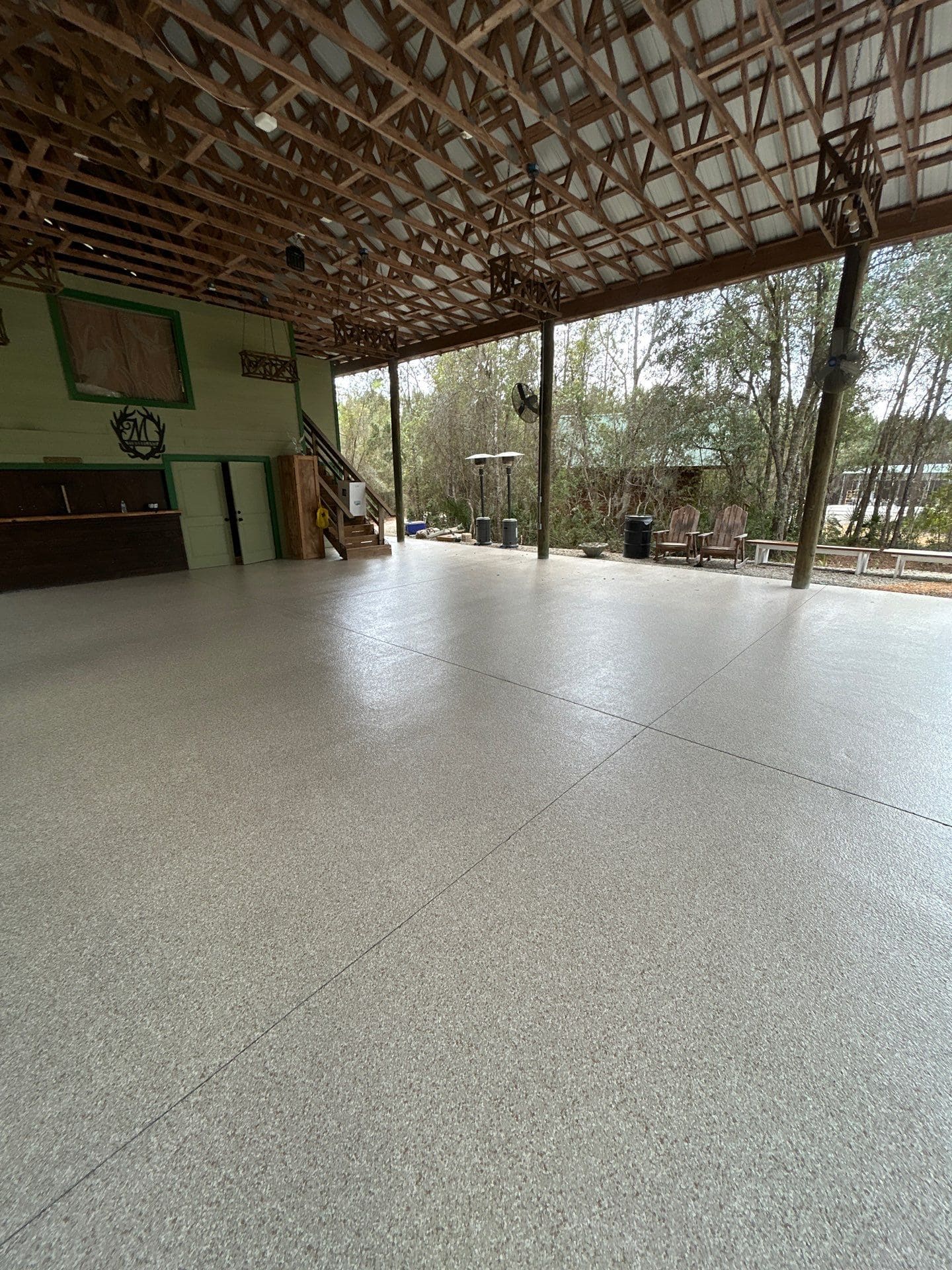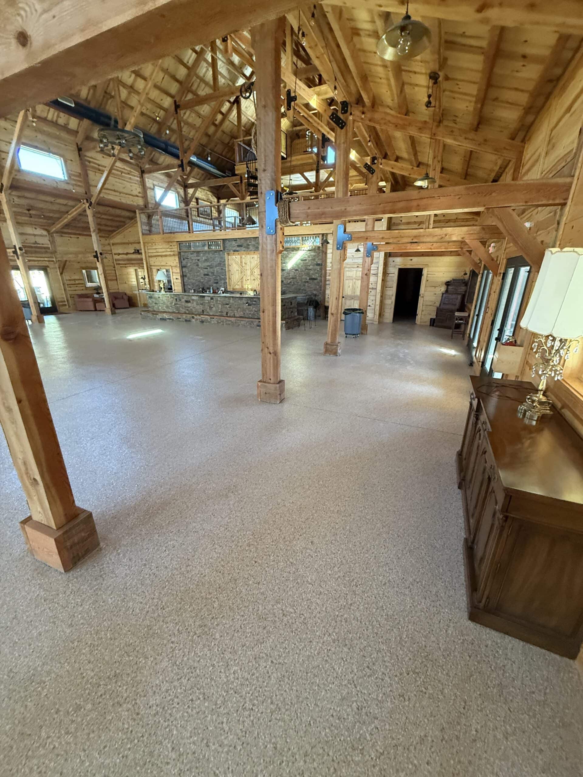 This space was finished in our Sandbar flake blend, giving it a clean, modern look while adding serious durability. With detailed surface preparation, a polyurea base coat, full flake broadcast, and a protective polyaspartic topcoat, this floor is built to handle equipment, storage, and everyday traffic with ease.
