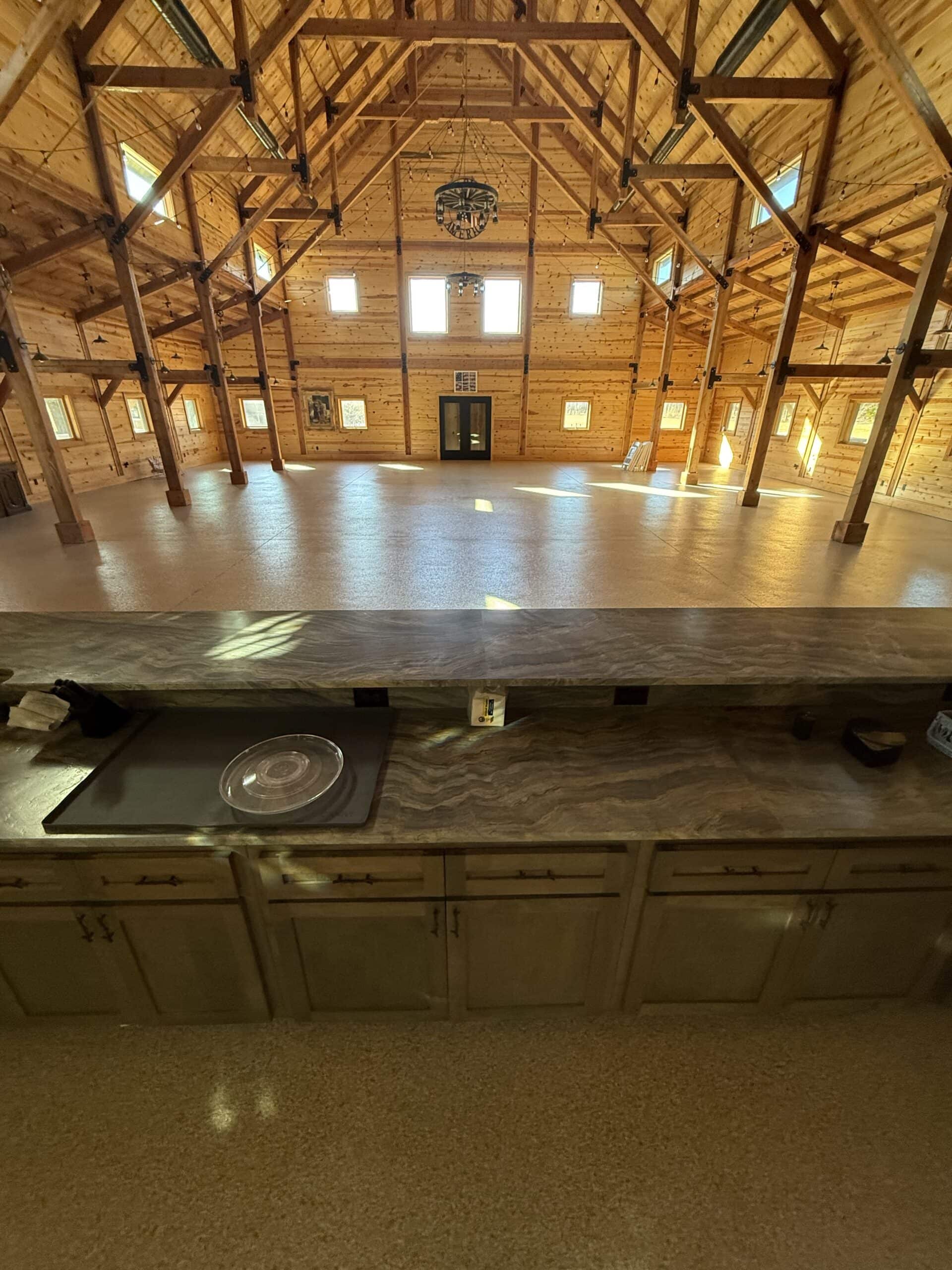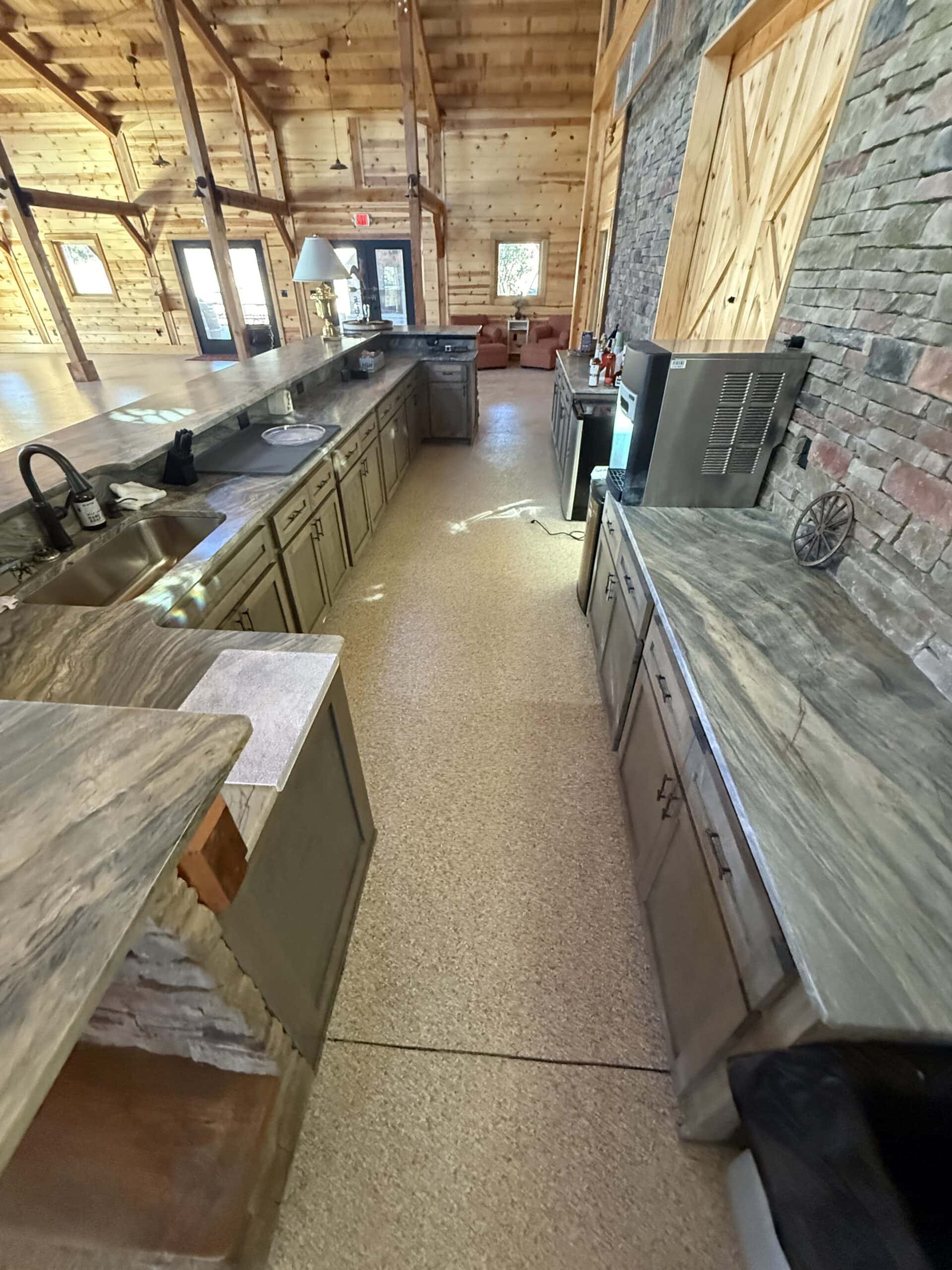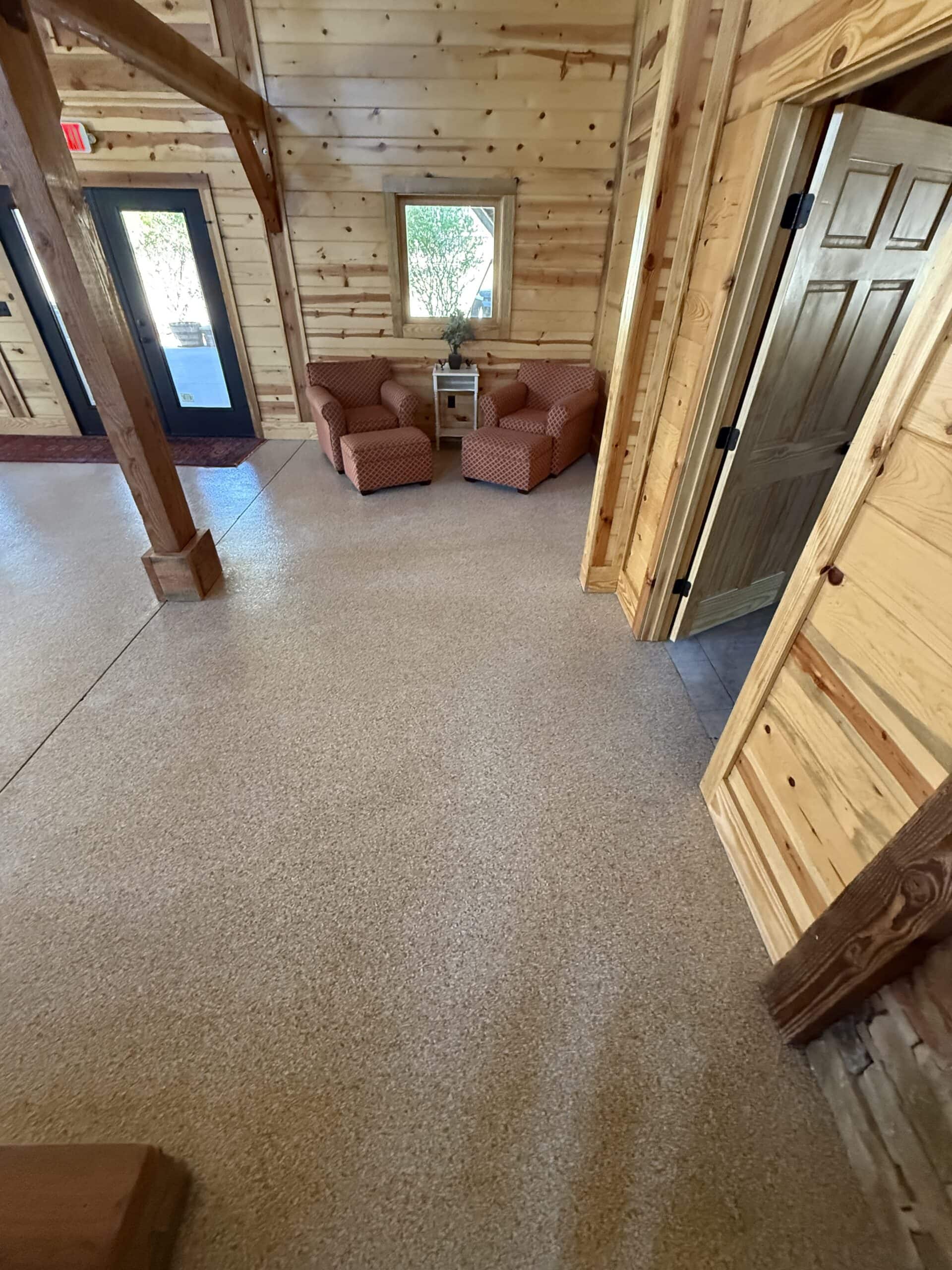 This space was finished in our Sandbar flake blend, giving it a clean, modern look while adding serious durability. With detailed surface preparation, a polyurea base coat, full flake broadcast, and a protective polyaspartic topcoat, this floor is built to handle equipment, storage, and everyday traffic with ease.