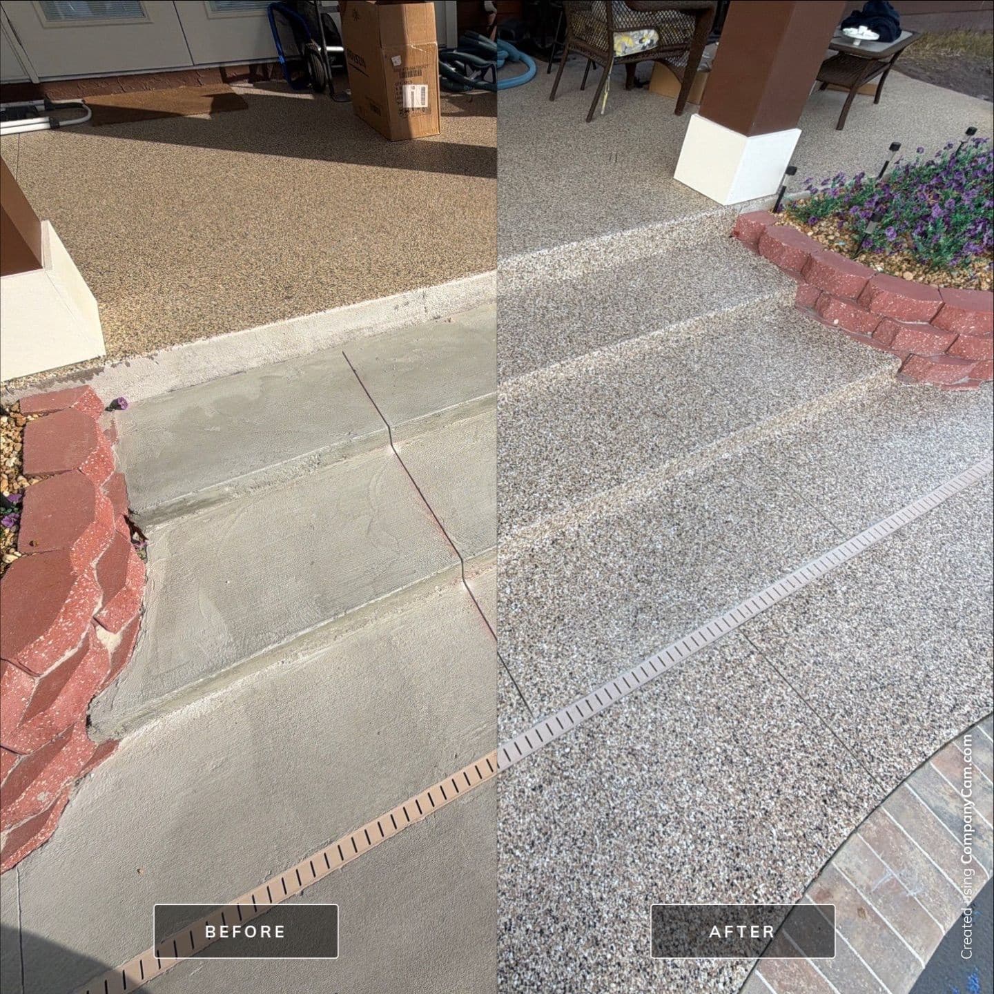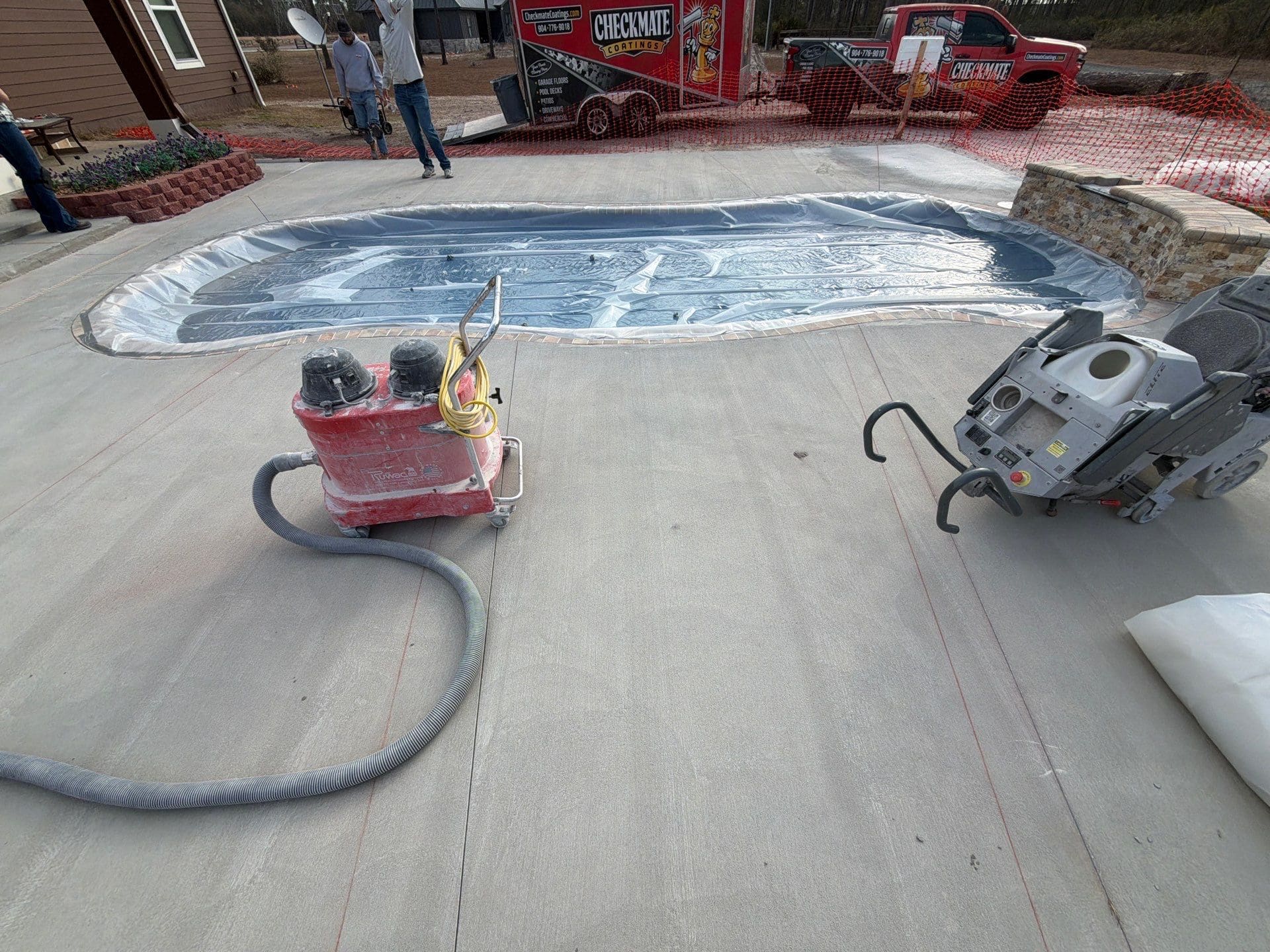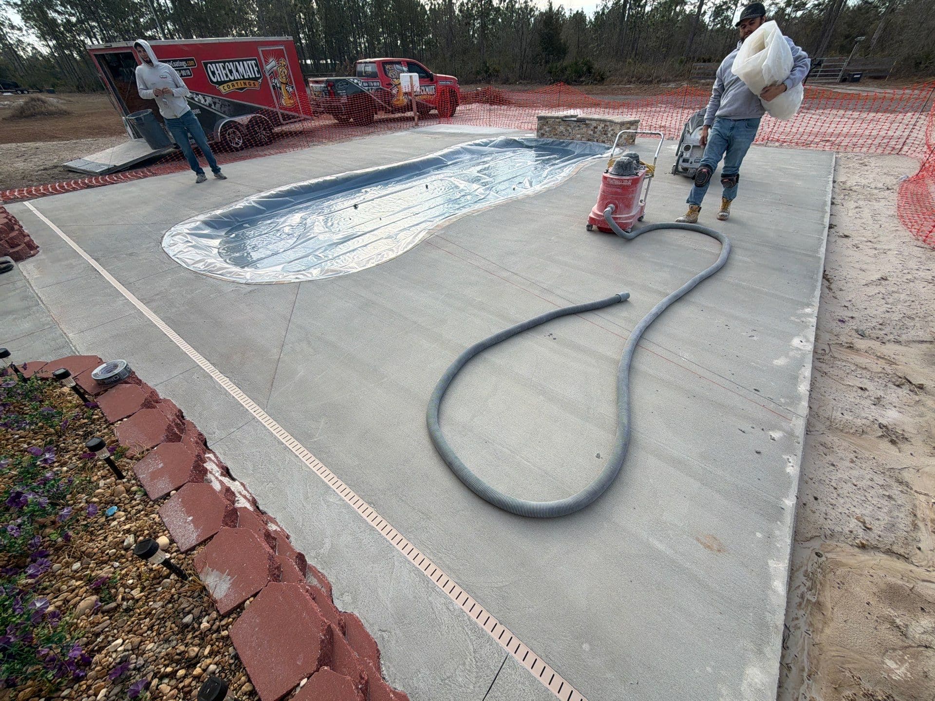 This pool deck was finished in our Outback flake blend, delivering a clean, modern look built for both comfort and safety. With detailed surface preparation, a polyurea base coat, full flake broadcast, and a protective polyaspartic topcoat, this system is slip-resistant, durable, and easy to maintain — perfect for poolside enjoyment all year long.